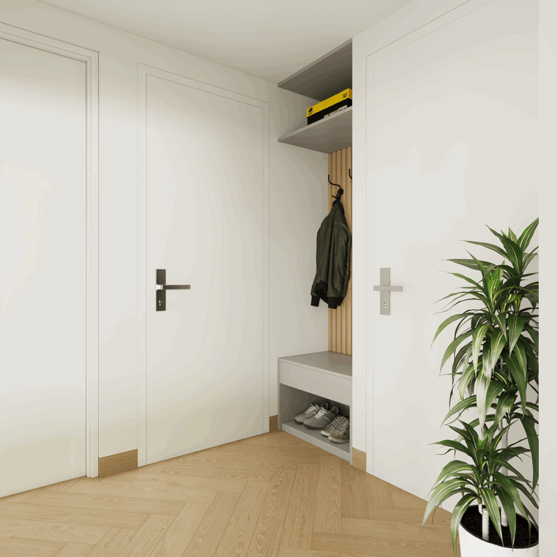 Kavel 1 vormt een prachtige woning binnen het project: een ruim, gelijkvloers appartement van meer dan 80 m², ontworpen voor comfortabel, modern én toekomstbestendig wonen. Dankzij de slimme indeling, hoogwaardige afwerking en royale buitenruimte is dit een woning die zowel praktisch als stijlvol is — ideaal voor wie gelijkvloers wil wonen zonder concessies te doen aan ruimte of luxe.